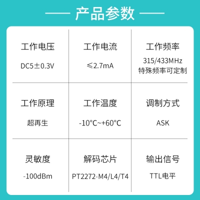 ZR06A接收模块采用超再生接收电路,线路设计简单,生产方便,生产成本低,体积小,功效超低,所以被广泛使用,这种设计有很多优点,它可以和各种解码电路或单片机配合,设计电路灵活方便。